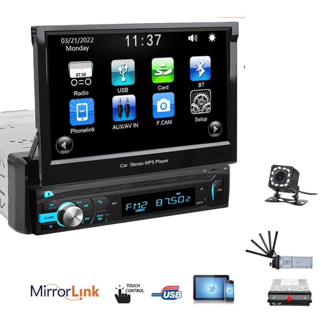 La radio para coche con pantalla táctil de 7 pulgadas, MP5, cámara de estacionamiento y múltiples opciones de conectividad es una excelente opción para mejorar tu experiencia de conducción y entretenimiento.