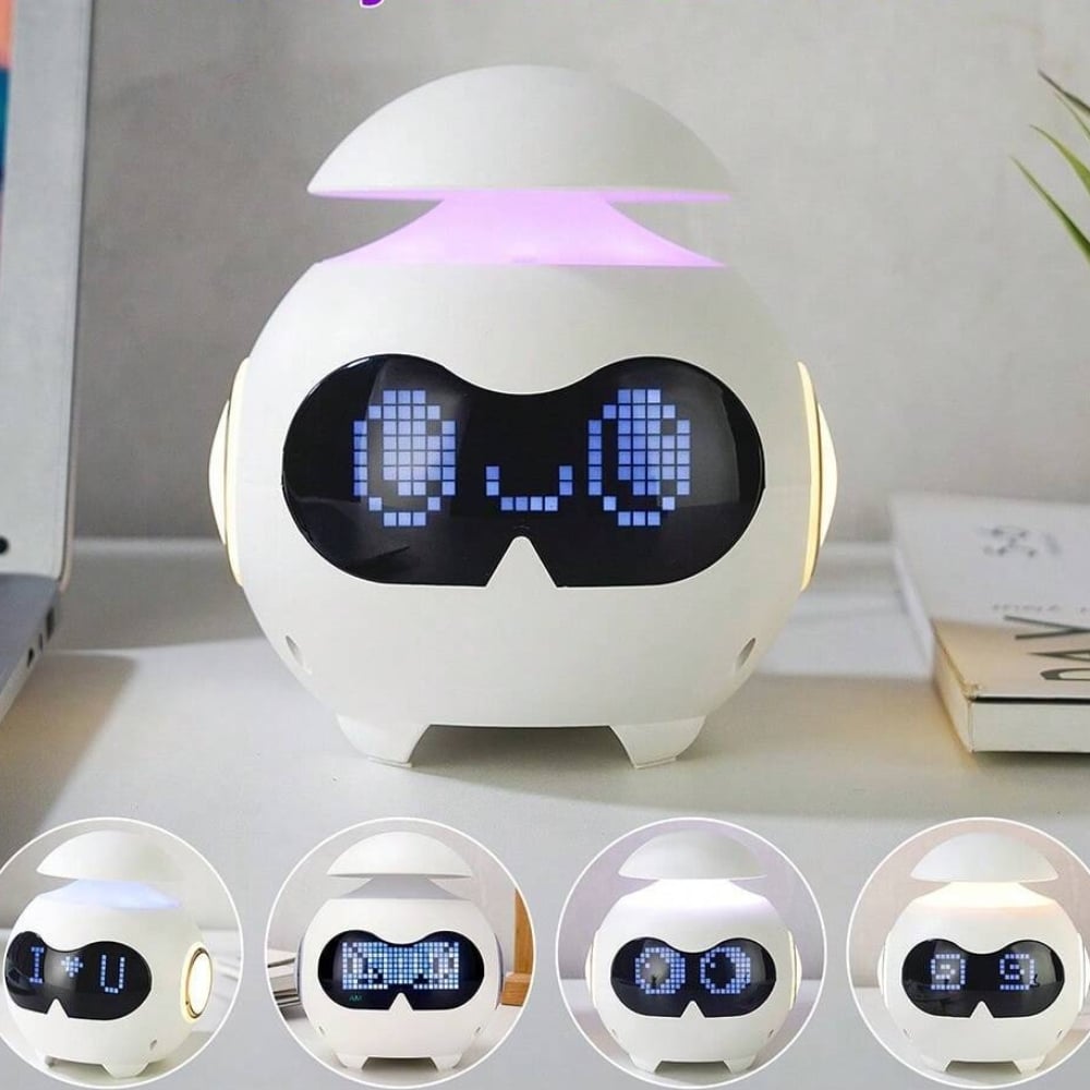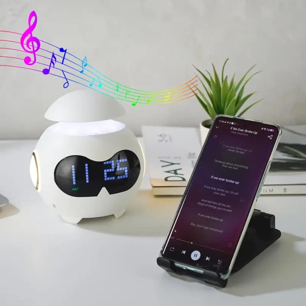 El Reloj Despertador Bluetooth Parlante Con Emoticones y Luz es el gadget perfecto para tu mesa de noche o escritorio. Con un diseño tipo robot, este reloj combina funcionalidad y estilo moderno, destacándose por su pantalla LED pixelada que muestra emoticones animados. Además de ser un reloj despertador, cuenta con múltiples funciones: veladora, parlante Bluetooth y reloj digital.