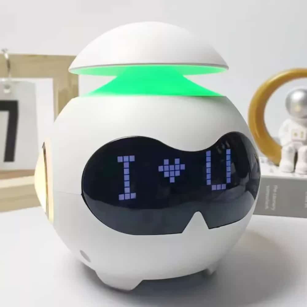 - Reloj despertador tipo robot con pantalla LED pixel.