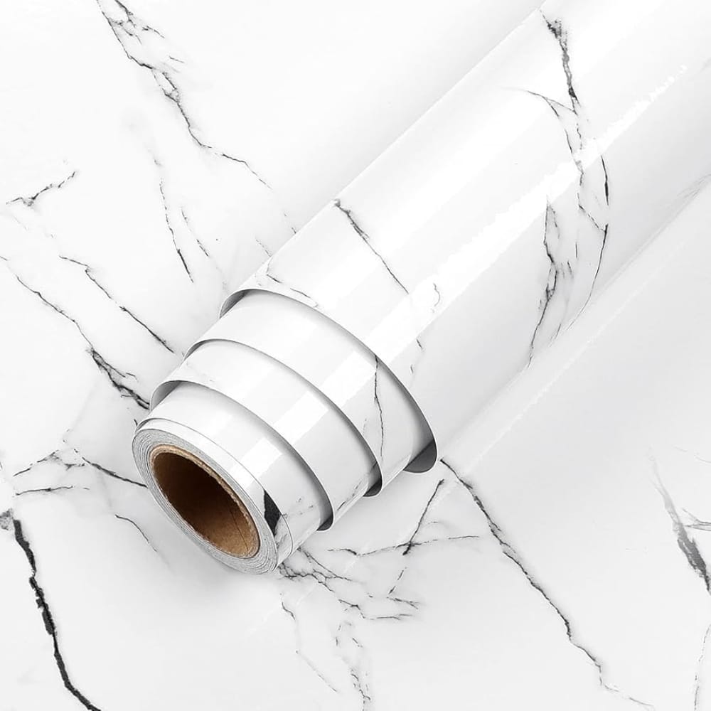 Rollo Adhesivo Simil Marmol 3×0.60m Blanco