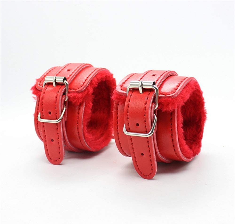 Set Bdsm 7 Piezas Esposas Latigo Bondage Cuerda Cuero Mli Rojo