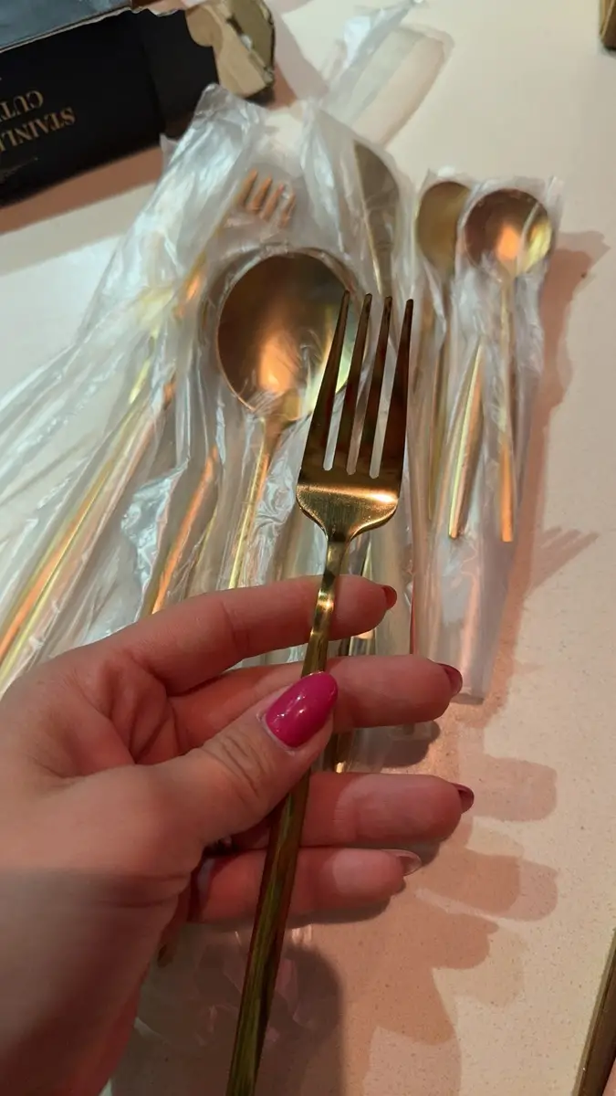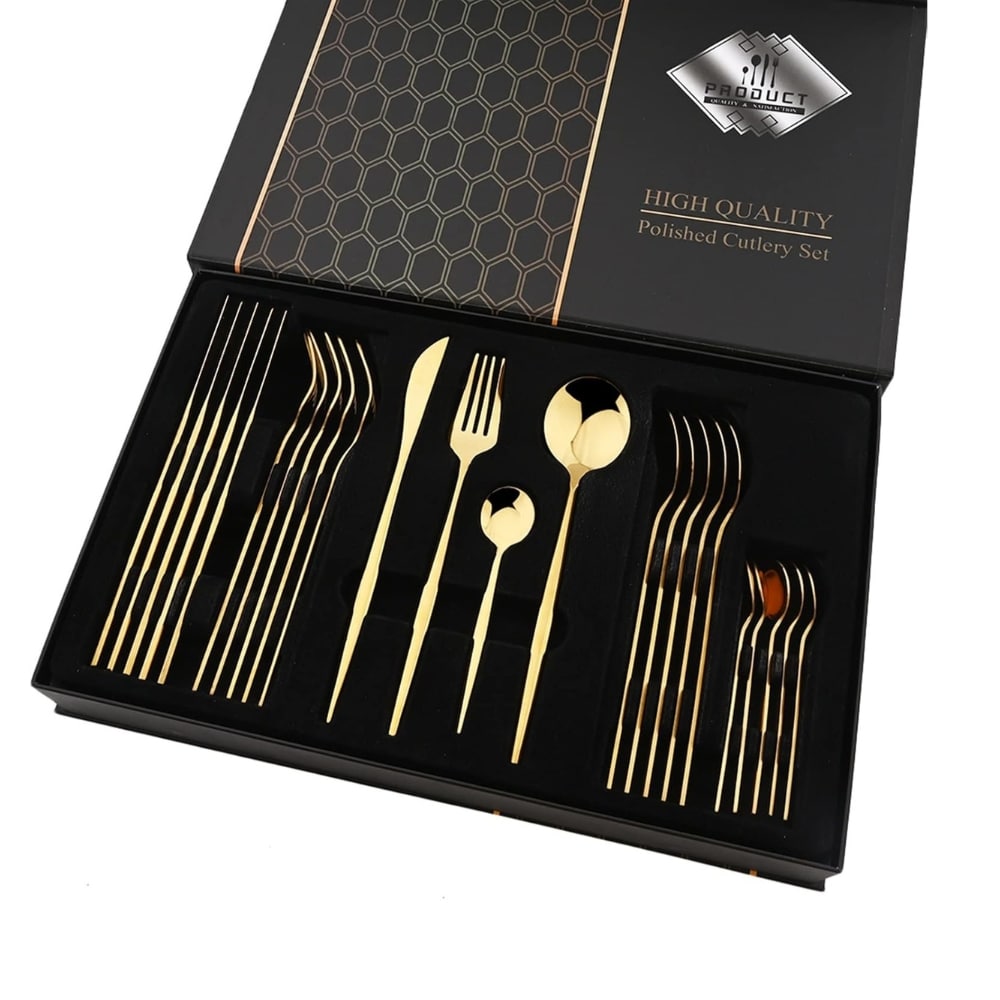Hermoso Set de 24 Cubiertos Acero Inoxidable Modernos Dorados en acero inoxidable