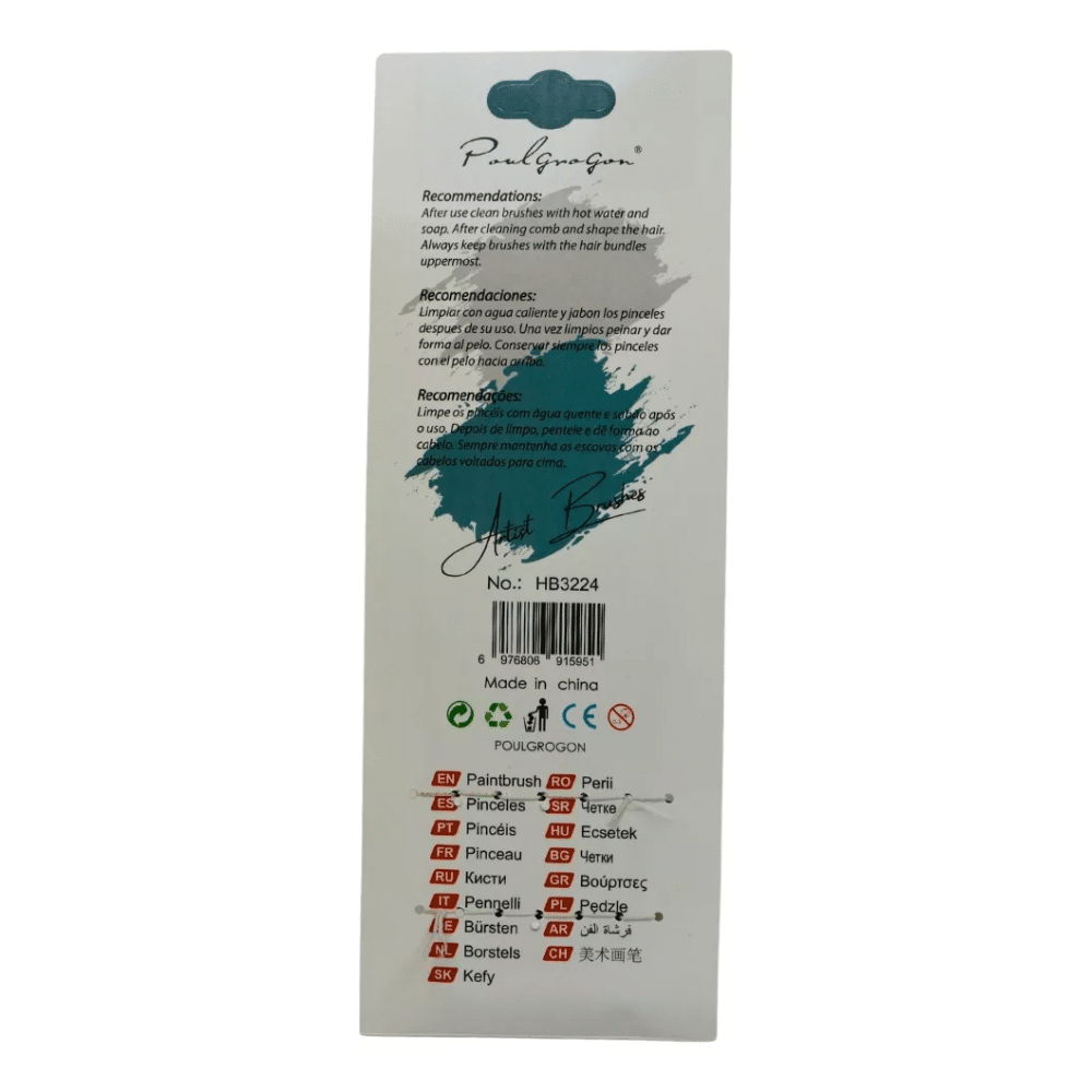 Este Set de 6 Pinceles de Nylon con mango ergonómico de madera es perfecto para trabajos detallados y precisos en pinturas acrílicas y al óleo. Su diseño permite un agarre cómodo y controlado, ideal para largas sesiones de pintura.