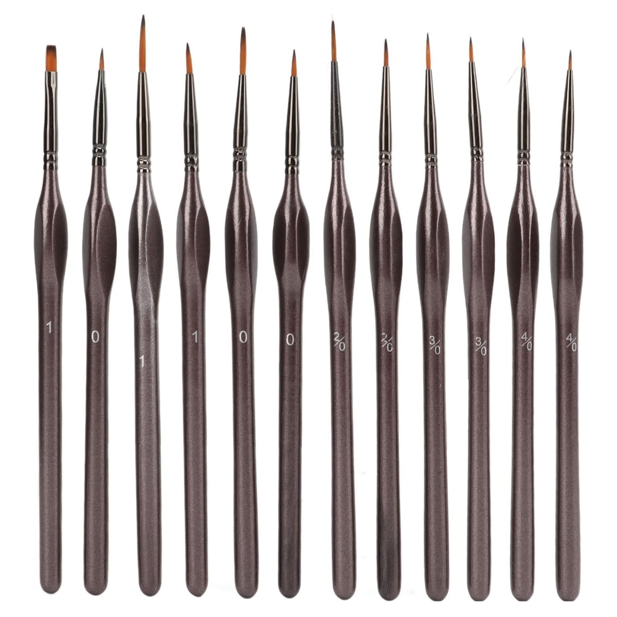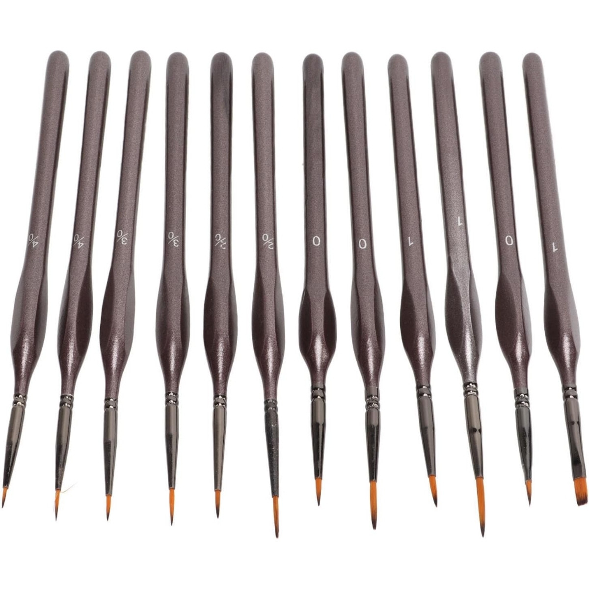 El set incluye una combinación de tamaños que abarca desde 4/0 hasta 1 y 0, permitiendo realizar desde detalles extremadamente finos hasta líneas más marcadas. Esta variedad hace que el kit sea especialmente útil para artistas que necesitan herramientas versátiles, pero que a la vez mantengan consistencia y calidad.