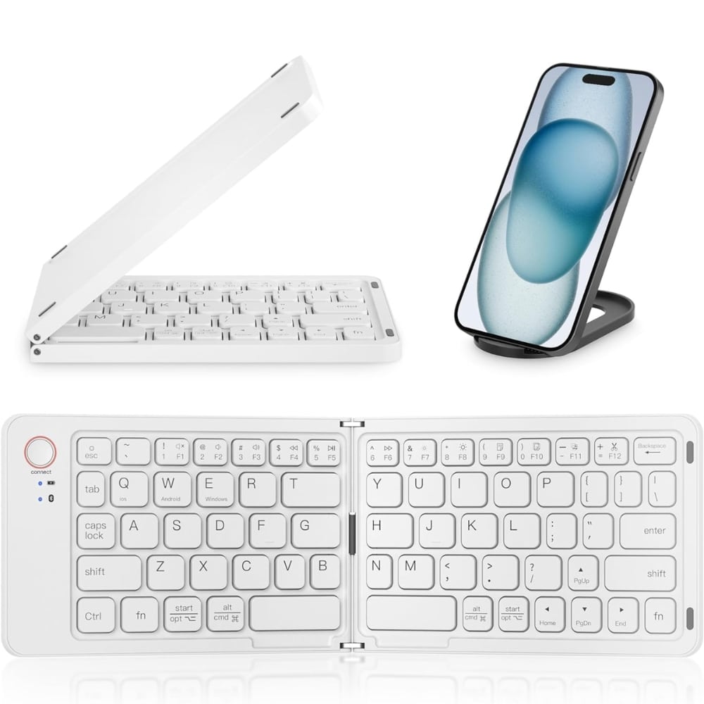 El Teclado Plegable Conexión Bluetooth Recargable + Regalo es la solución perfecta para quienes buscan un teclado portátil y versátil. Con un diseño compacto y plegable, este teclado te permite llevarlo a todas partes, sin sacrificar comodidad o funcionalidad.