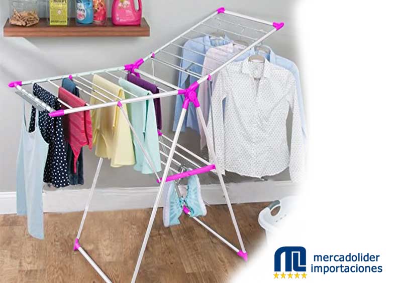 - 2 alas laterales en la parte superior del tendedero para colgar perchas para camisas sin dificultades
