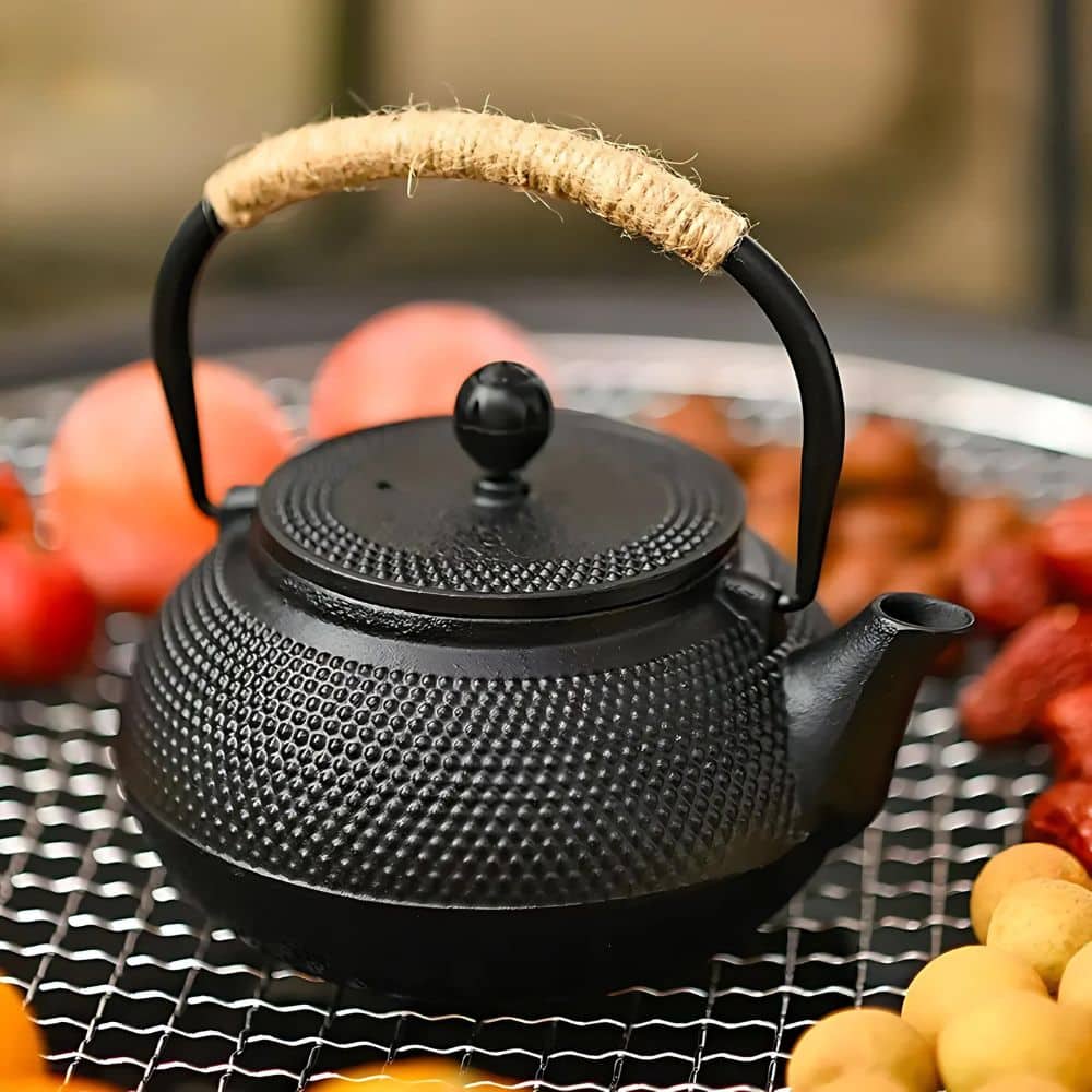 Hecha de hierro fundido, esta tetera no solo destaca por su belleza estética, sino también por su funcionalidad. El hierro fundido es conocido por su capacidad para retener el calor, lo que asegura que tu té se mantenga caliente durante más tiempo.
