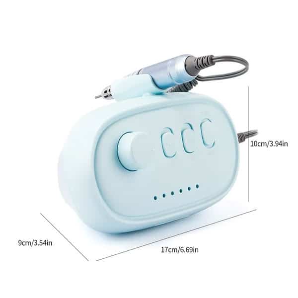 - [Fácil Portátil]: PEQUEÑO Y LUZ, Esta broca de las uñas portátil se puede colocar en una bolsa de maquillaje y hacer un traje de cuidado de uñas para principiantes en su hogar o cuando viaja.