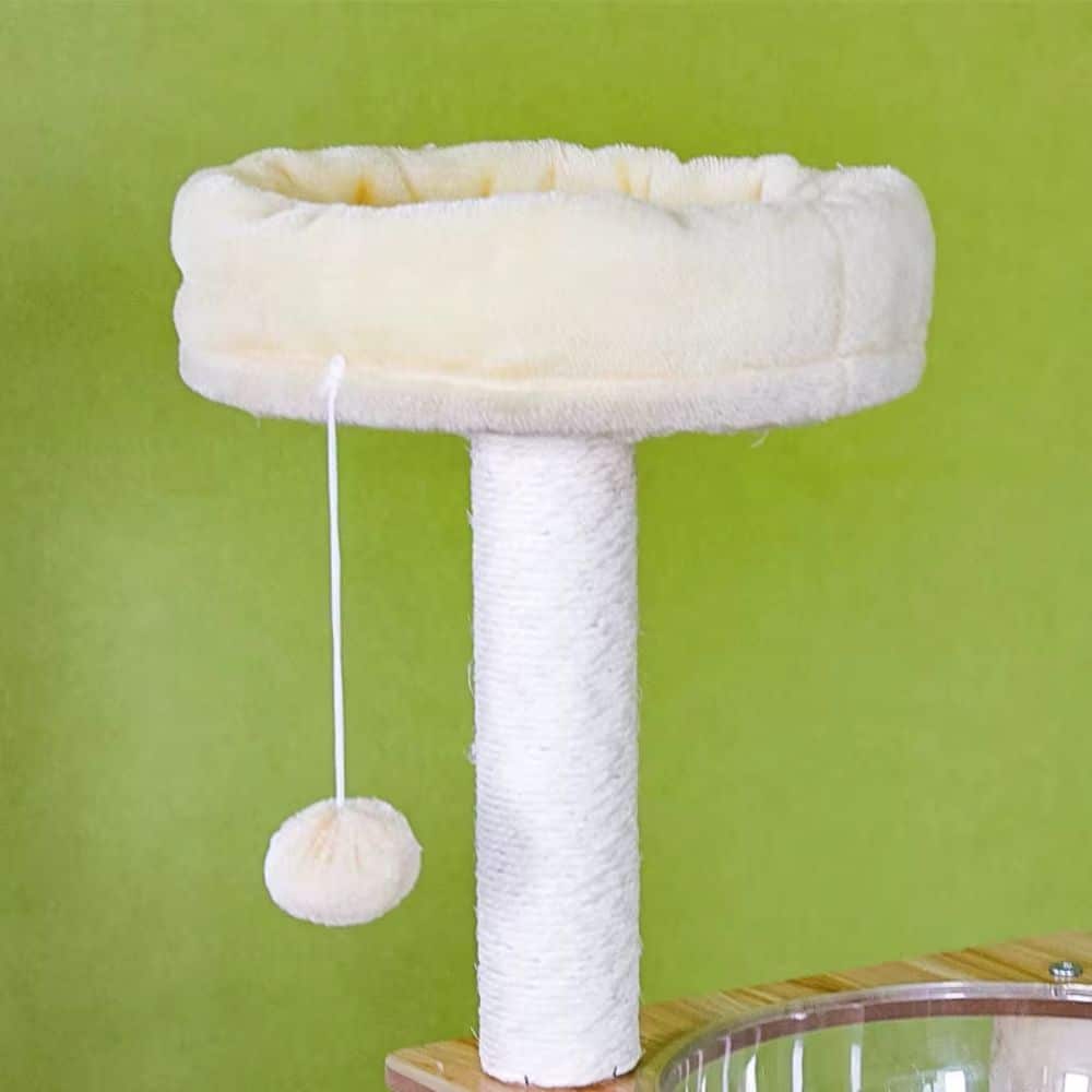 Como si fuera poco, también cuenta con una plataforma de acrílico transparente, que no solo le da un toque moderno, sino que permite que tu gato vea su entorno desde un ángulo diferente, lo cual estimula su curiosidad natural.