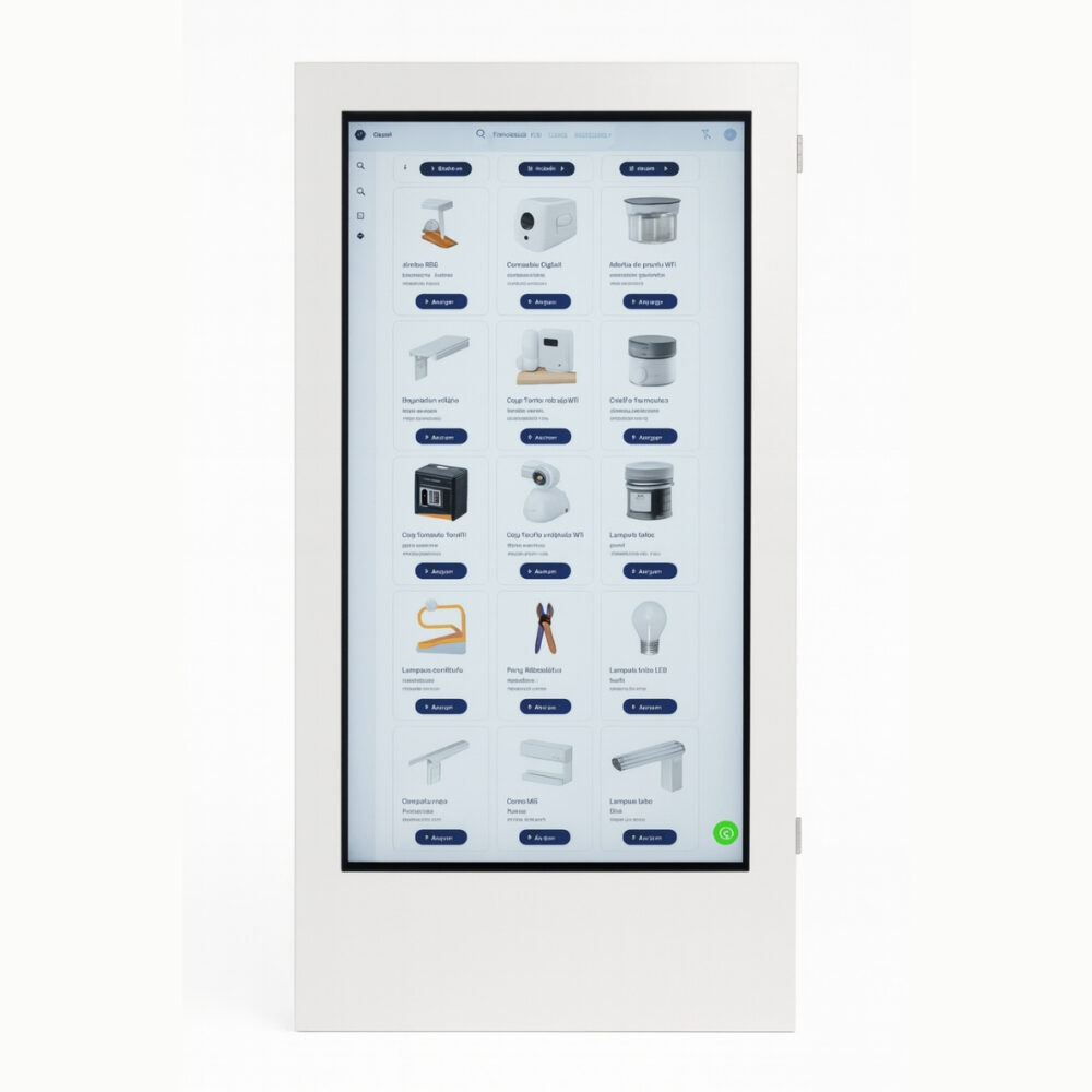 Por otra parte, su formato vertical de 32 pulgadas es ideal para mostrar publicidad digital, promociones, listas de precios o información institucional. También es una excelente opción para puntos de consulta en comercios, permitiendo a los clientes navegar por productos, disponibilidad, variantes y descripciones. Es decir, el equipo es práctico, moderno y eficiente para mejorar la experiencia del usuario.