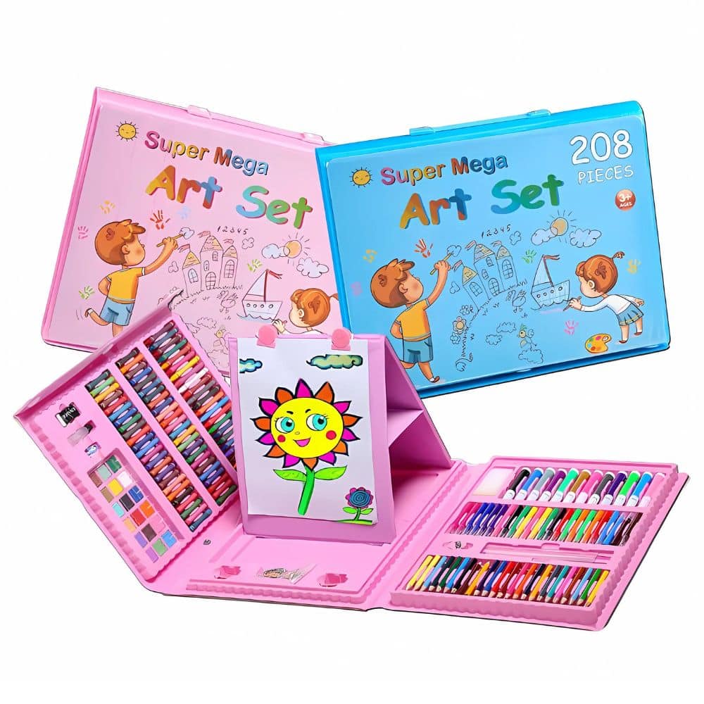 - Set Completo de 208 Piezas: Incluye crayones de colores vibrantes, marcadores y acuarelas.