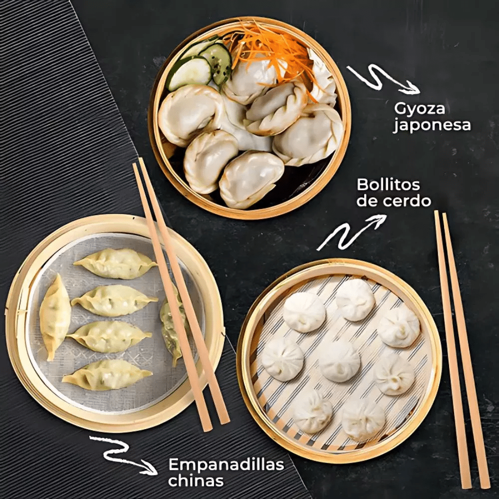 Vaporera de Bamboo para Cocinar al Vapor de 5 Pisos, 30×16 cm: Diseñada para cocinar de manera saludable y eficiente, esta vaporera de bambú natural permite conservar el sabor y los nutrientes de tus alimentos. Con cinco niveles, es perfecta para preparar diferentes ingredientes al mismo tiempo, desde verduras hasta dim sum. Un accesorio ecológico y elegante que añade un toque oriental a tu cocina.