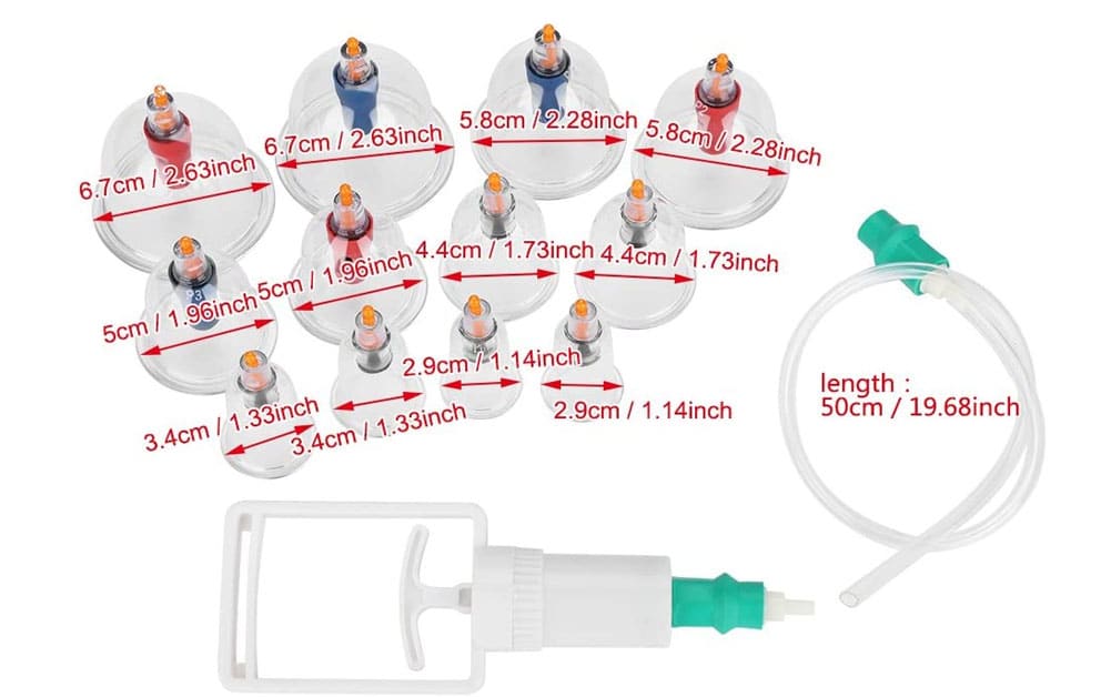 Las Ventosas Chinas Pistola De Vacío X 12 Set Copas con Pistola son ideales para mejorar la tensión muscular y estimular la circulación sanguínea.